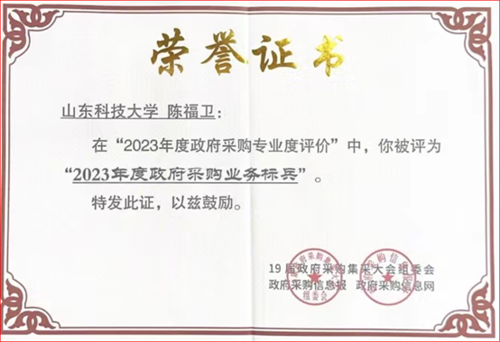 2月28日至3月1日,全国第19届政府采购集采大会在北京隆重召开。本届大会以“采购需求管理与政策效能提升”为主题,财政部国库司政府采购管理处、中央国家机关政府采购中心(国采中心)、海关总署物资装备采购中心、国家税务总局集中采购中心等政府采购监管部门有关领导出席,全国350余名政府采购从业人员共襄盛会,为推动政府采购制度改革和政府集中采购工作高质量发展建言献策。会议表彰了政府采购领域中涌现出的先进集体和先进个人,我校获评“2023年度政府采购先进高校”荣誉称号,资产管理处陈福卫同志获得“2023年度政府采购业务标兵”称号。
